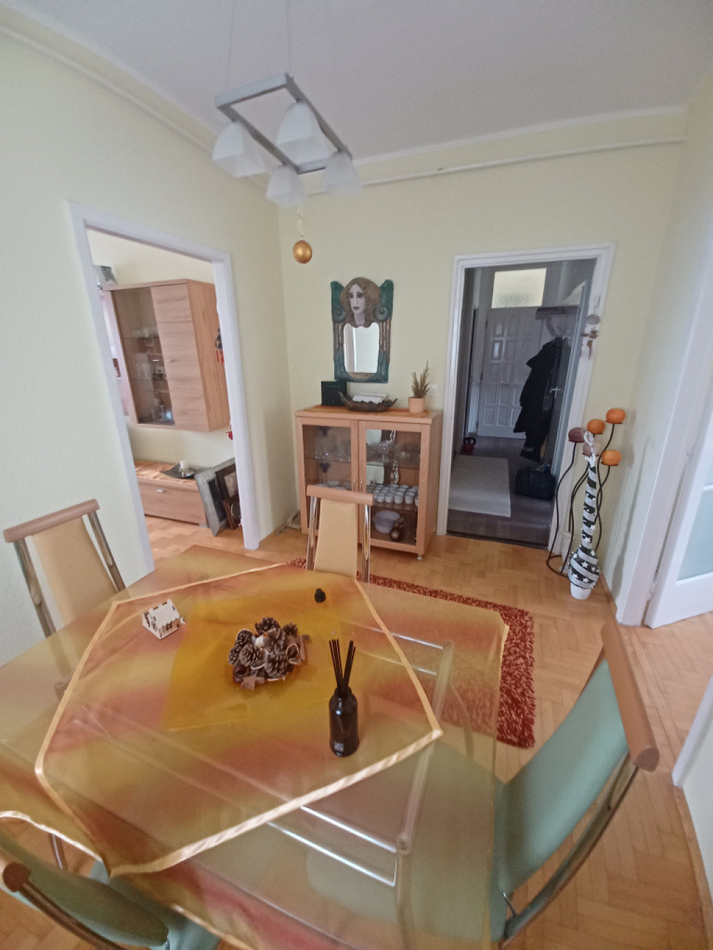 A hálószoba és nappali között lévő félszoba jelenleg az étkező funkcióját tölti be.