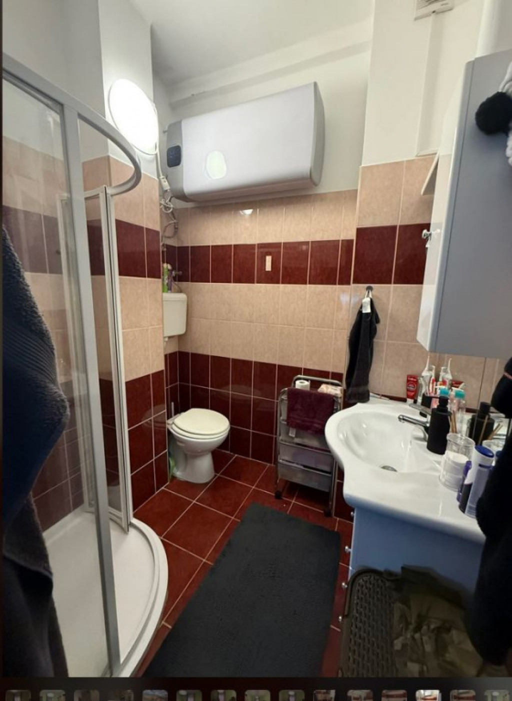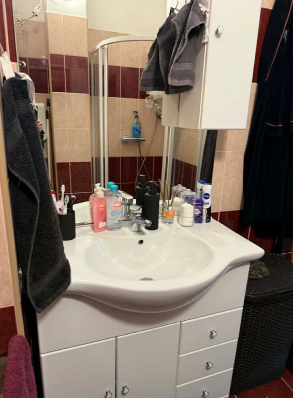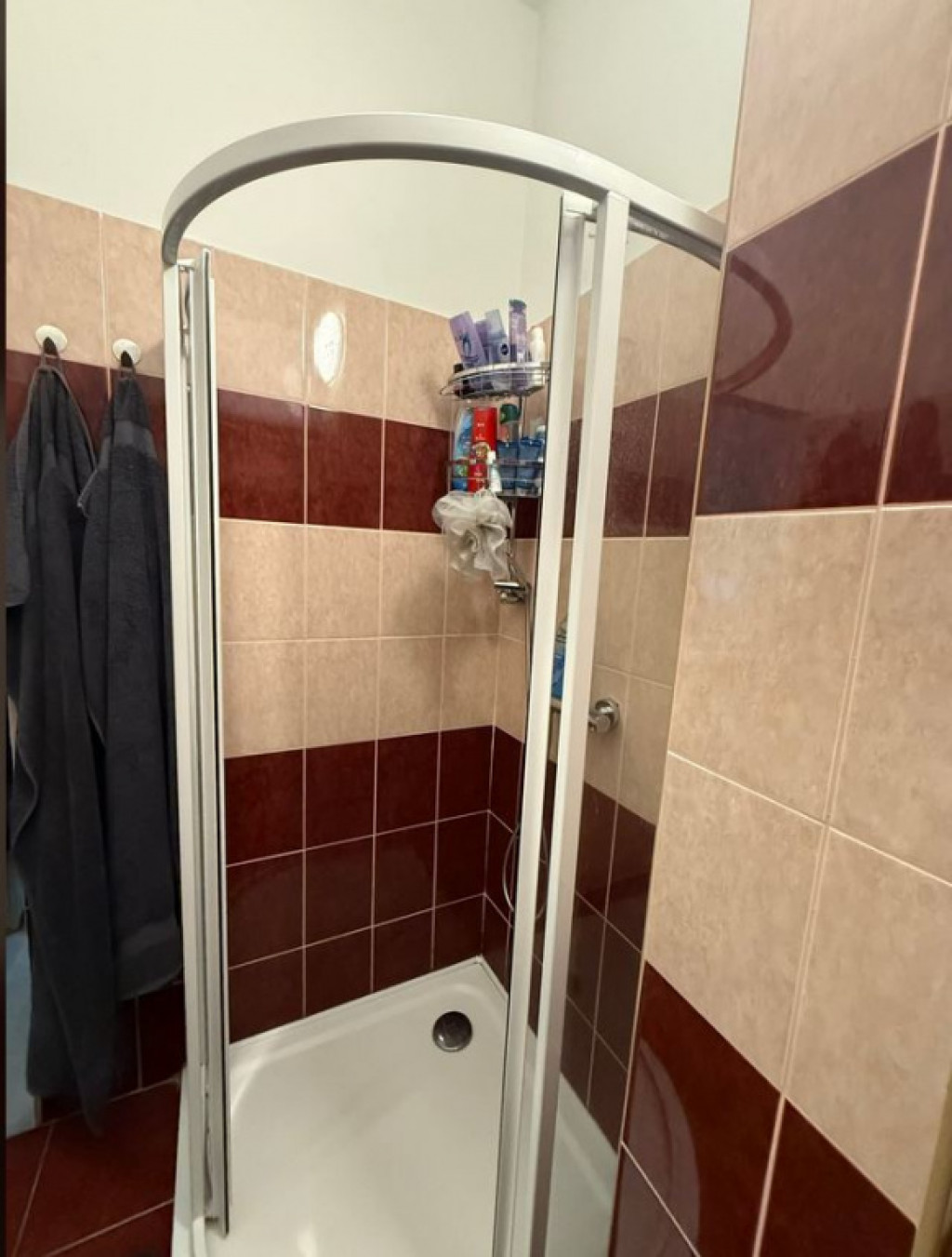 A fürdőszoba felújításakor zuhanykabint építettek be ls tolóajtót.