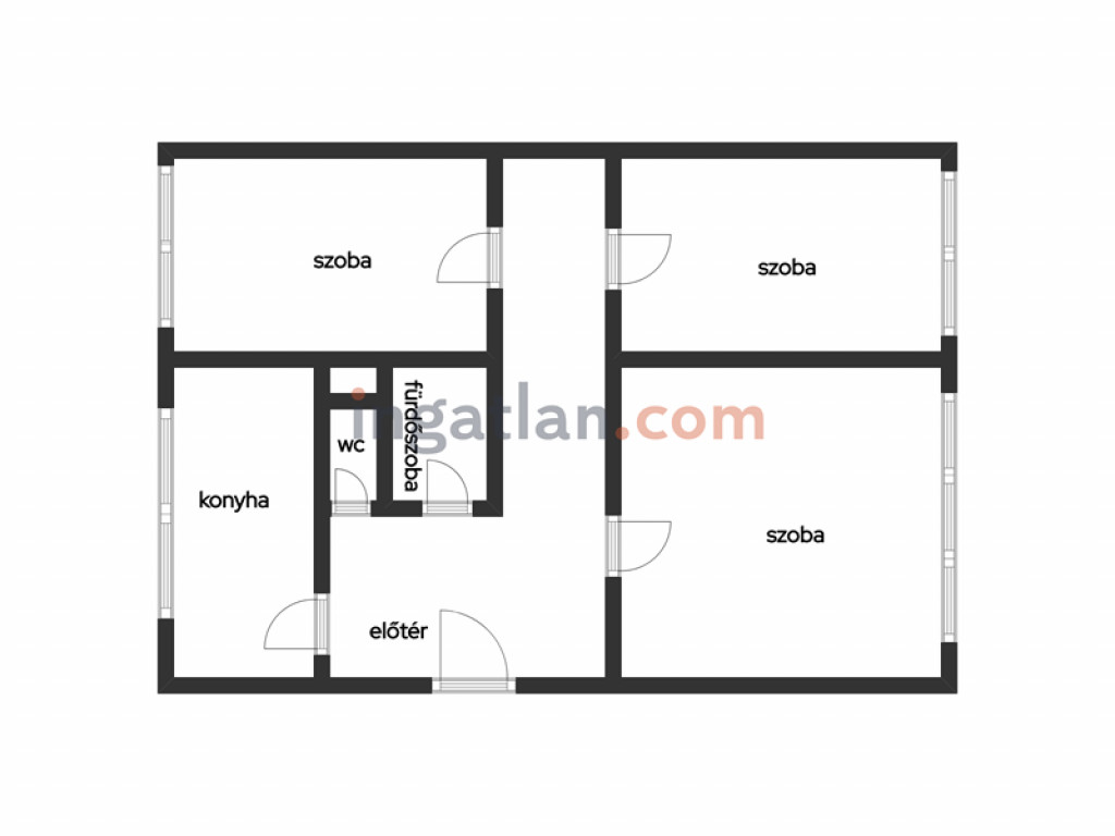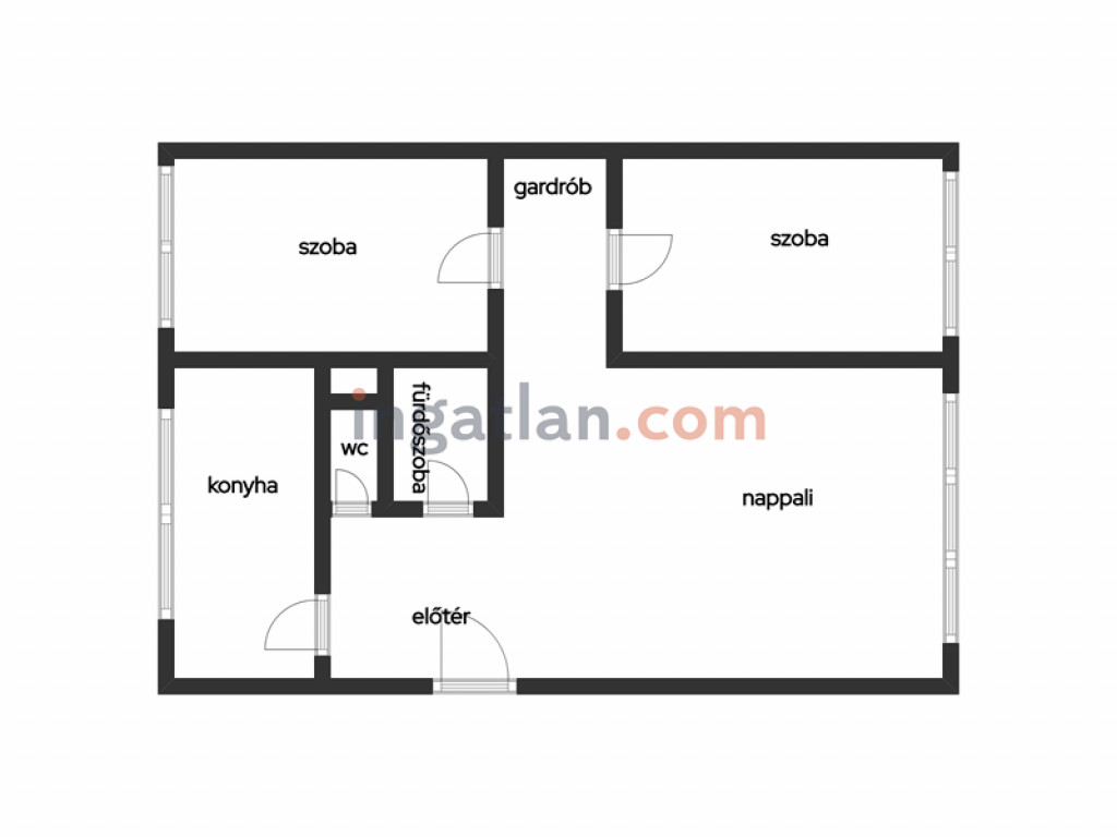 A Nappali északnyugati fekvésű, nagy ablakos, 18 m2 alapterületű, egybe nyitva az előtérrel, ami tovább növeli a teret. A szobák külön nyílóak, nagy ablakosak, északnyugati és délkeleti fekvésűek, az átjáróban egy gardrób lett kialakítva. A konyha nagy ablakos, konyhabútorral, gáztűzhellyel felszerelve. A fürdőszoba káddal, mosdóval felszerel, a toalett külön helységben kapott helyet.