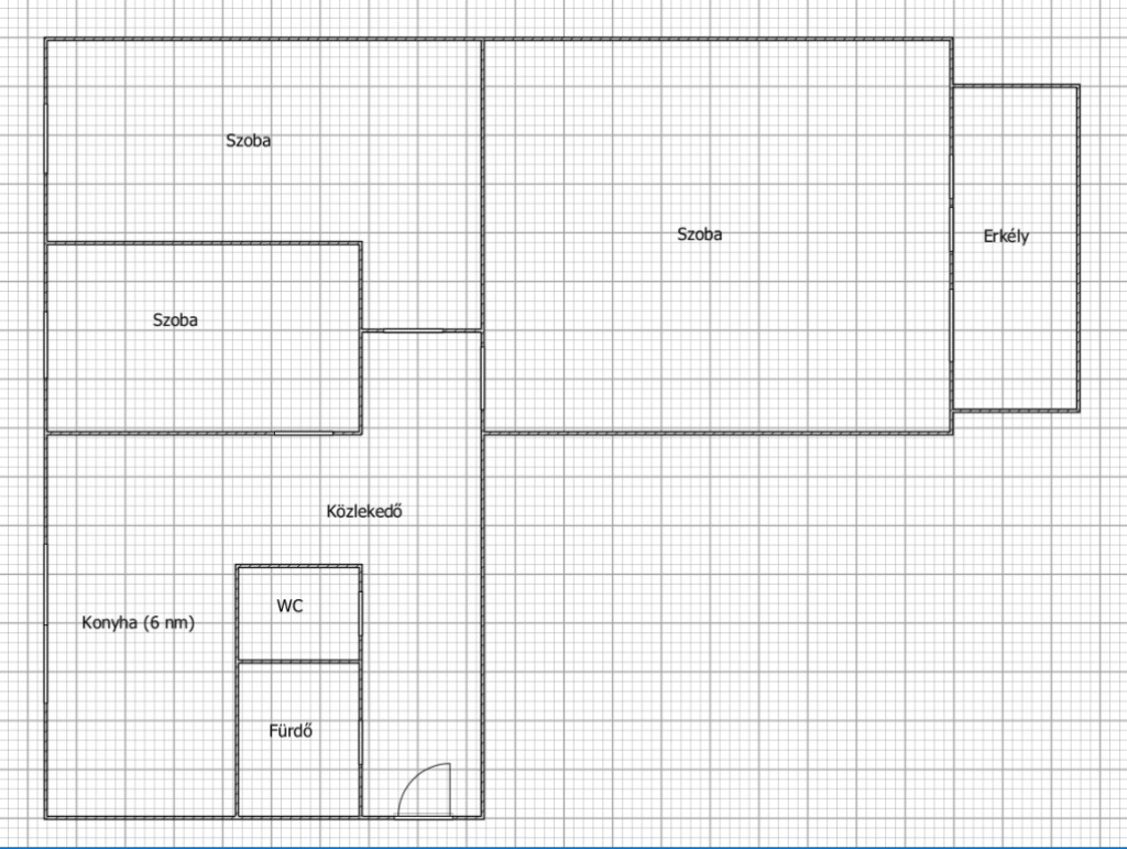 A lakás beosztása: közlekedő, konyha, 2 szoba, félszoba, erkély, fürdőszoba, WC.