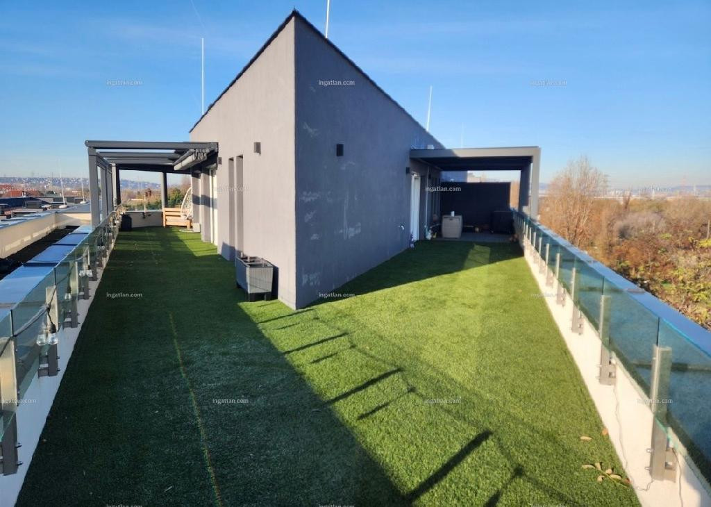 104 nm-es terasz, melyből kb. 30 nm? VPC burkolatú, 68 nm prémium minőségű műfűvel borított.