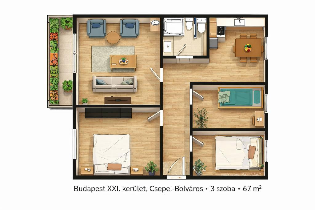 A környék valóban élhető: pár perc sétával elérhető minden, ami a mindennapokhoz szükséges - üzletek, gyógyszertár, orvosi ellátás, iskolák, óvodák, éttermek, szolgáltatások, valamint a Csepel Plaza. A közelben parkok és sétányok is találhatók, így családosok számára különösen kedvező a környezet.