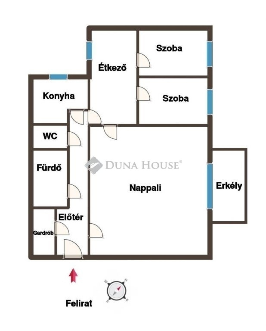 az étkezőn keresztül, valamint a folyosóról is be lehet jutni, a lakás körbejárható.