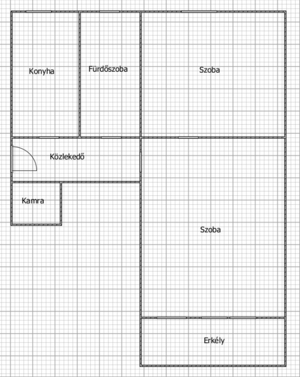 A lakás beosztása: közlekedő, konyha, kamra, 2 szoba (21 és 12 nm), erkély, fürdőszoba + WC.