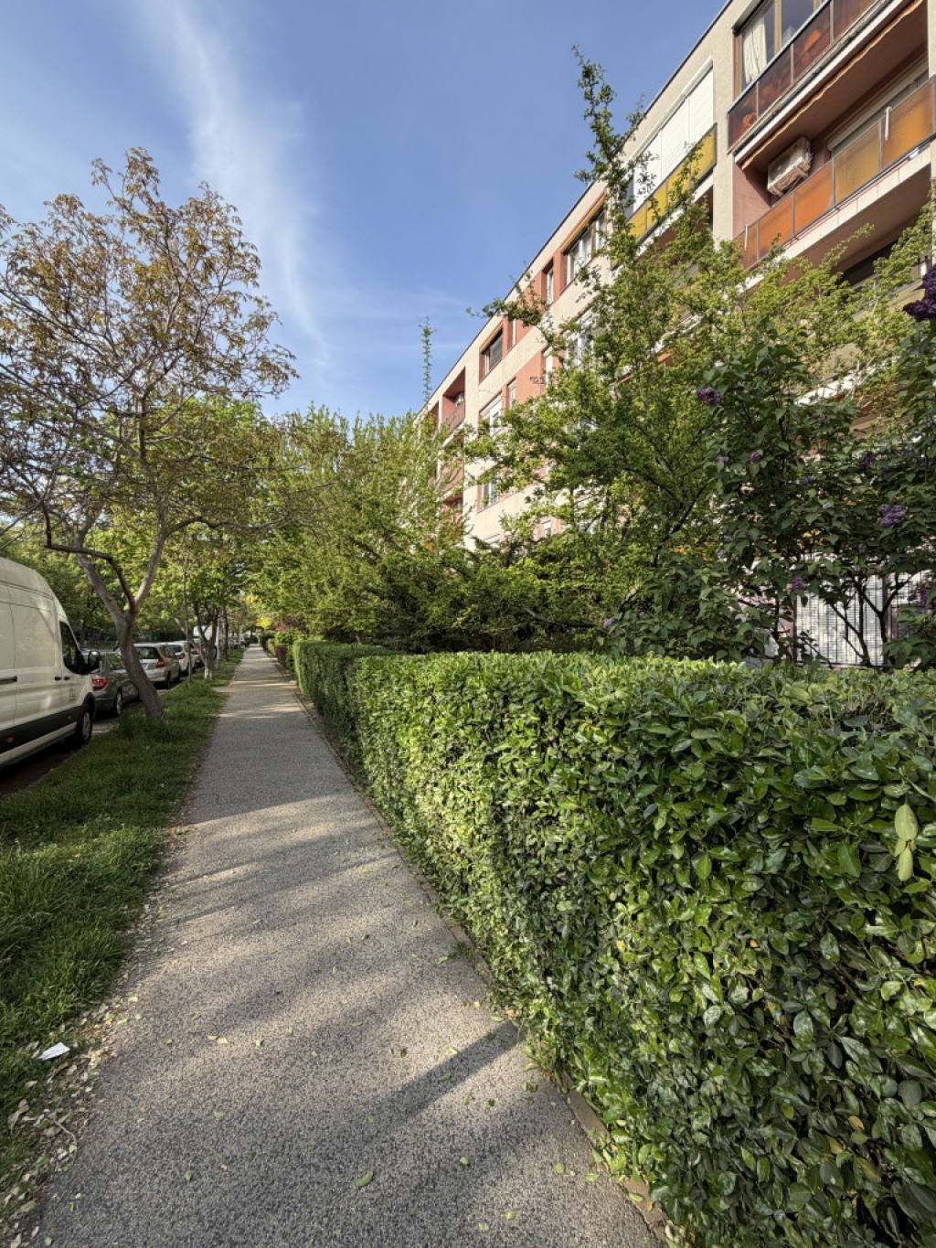 A ház központhoz közeli, de mégis nyugodt környezetű. Fák veszik körül.
