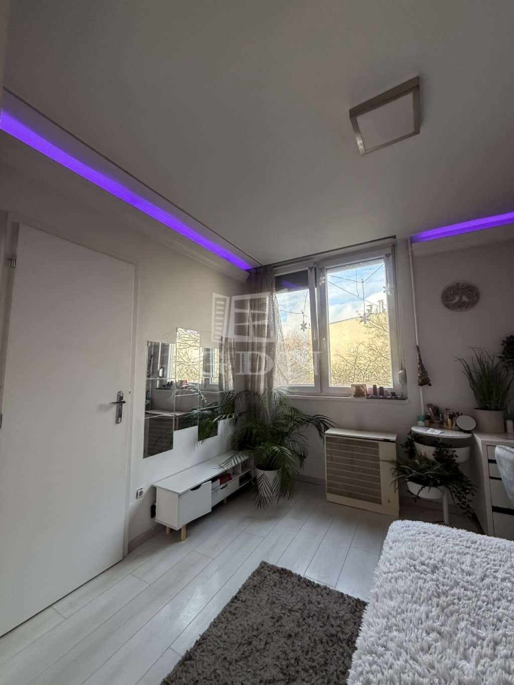 A nagyobbik szoba világos, utcai fekvésű, innen nyílik az erkély, míg a kisebbik szoba parkosított, zöld környezetre néz. A lakás egész nap kedvező fényviszonyokkal rendelkezik.