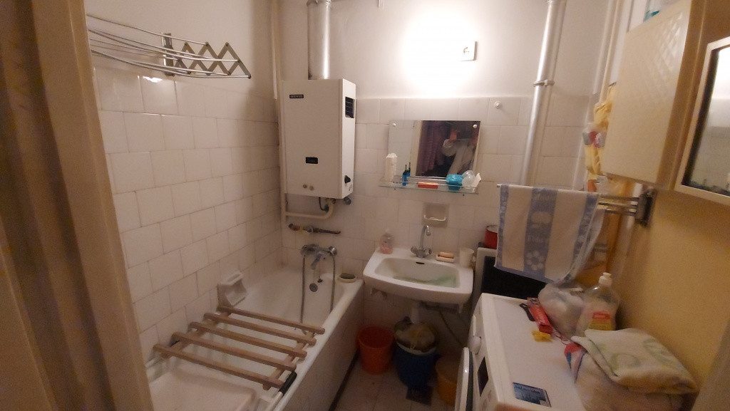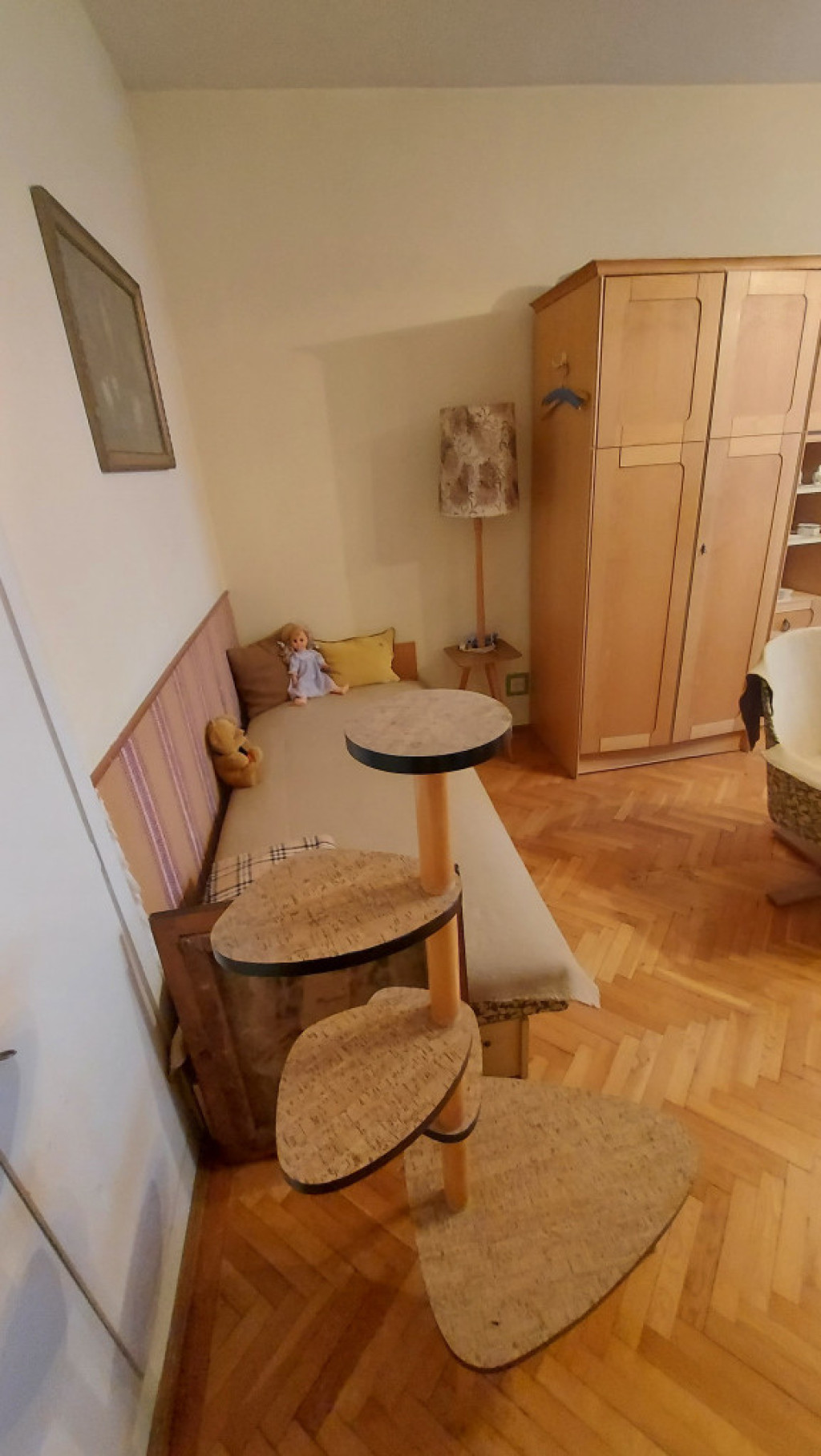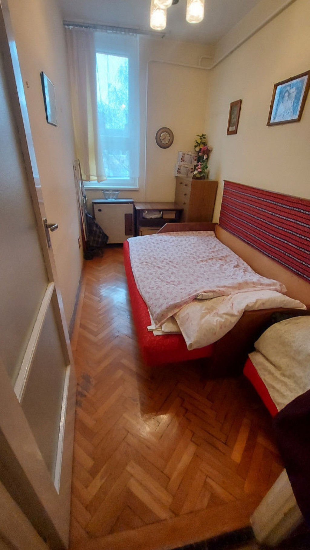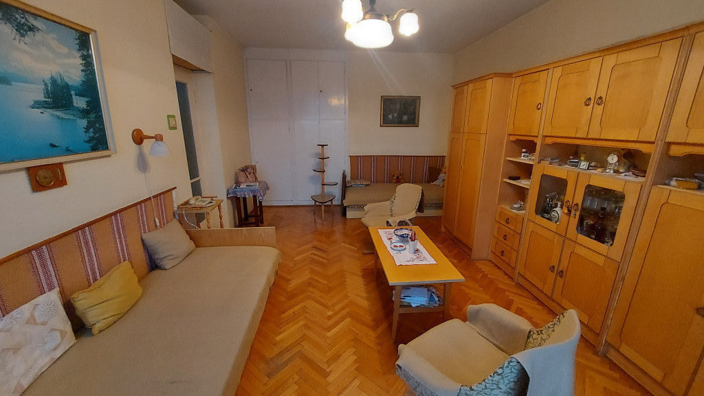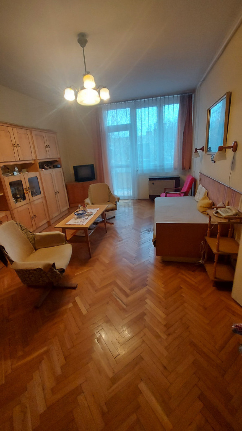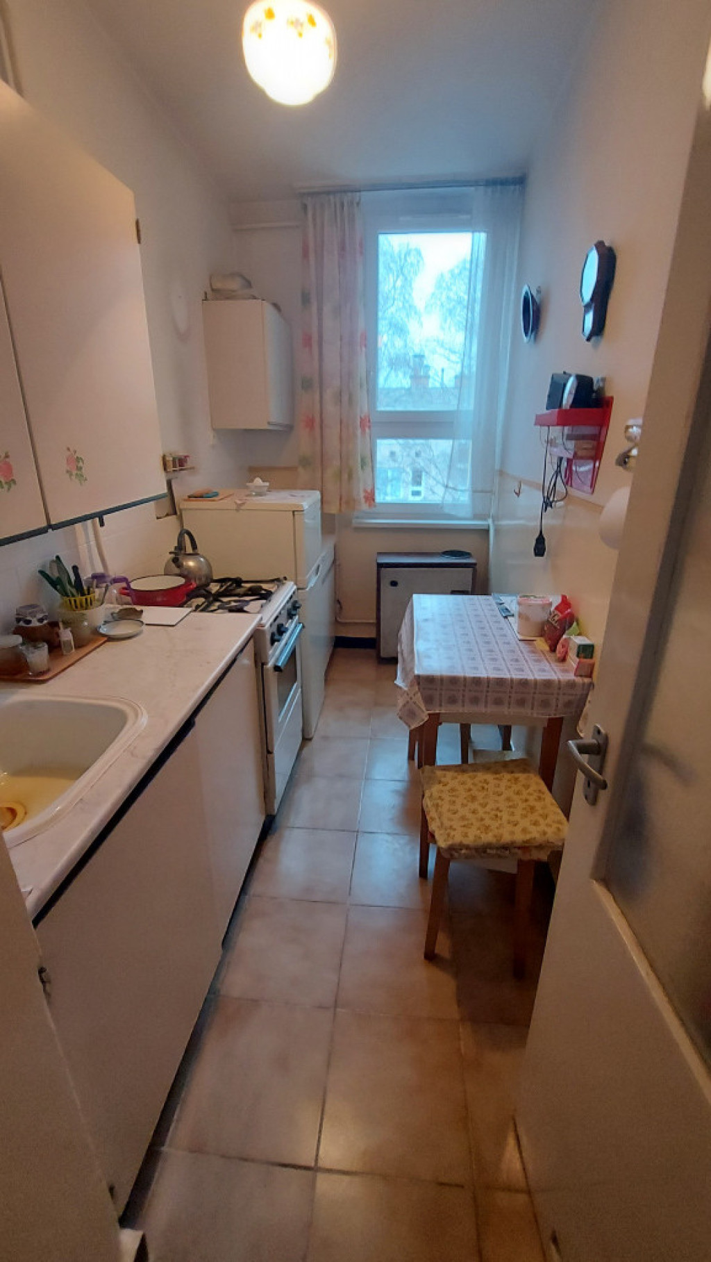 A lakásba lépve jobbra az ablakos konyha, majd a kisebb szoba helyezkedik el. A bejárattal szemben található a nappali , melyhez kapcsolódik a kb . 5nm erkély .