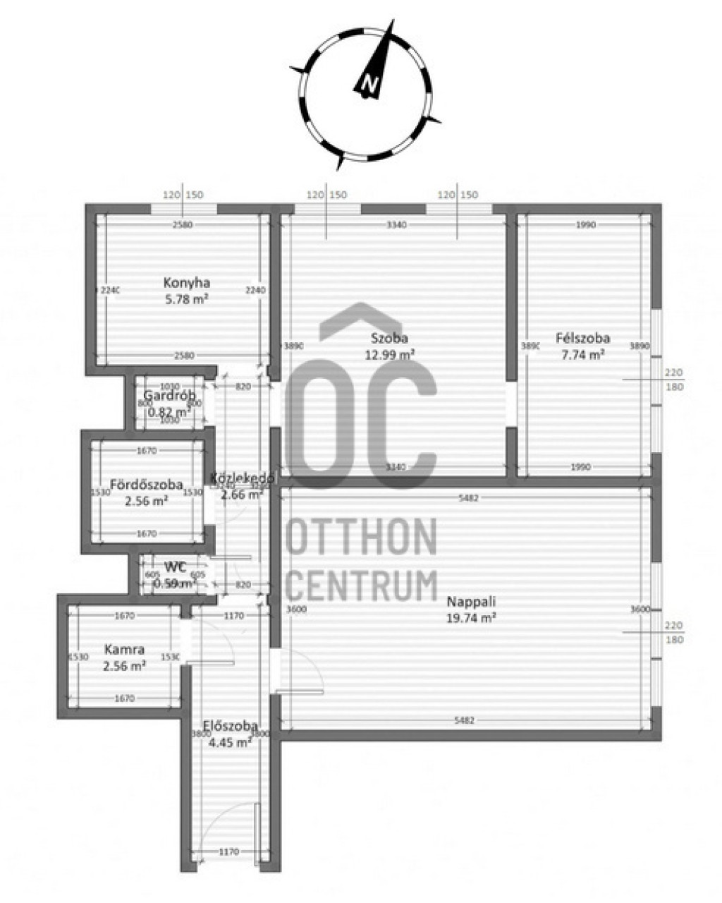 -3 szobával rendelkezik (nappali + 2 háló), amelyből 2 szoba különnyíló.