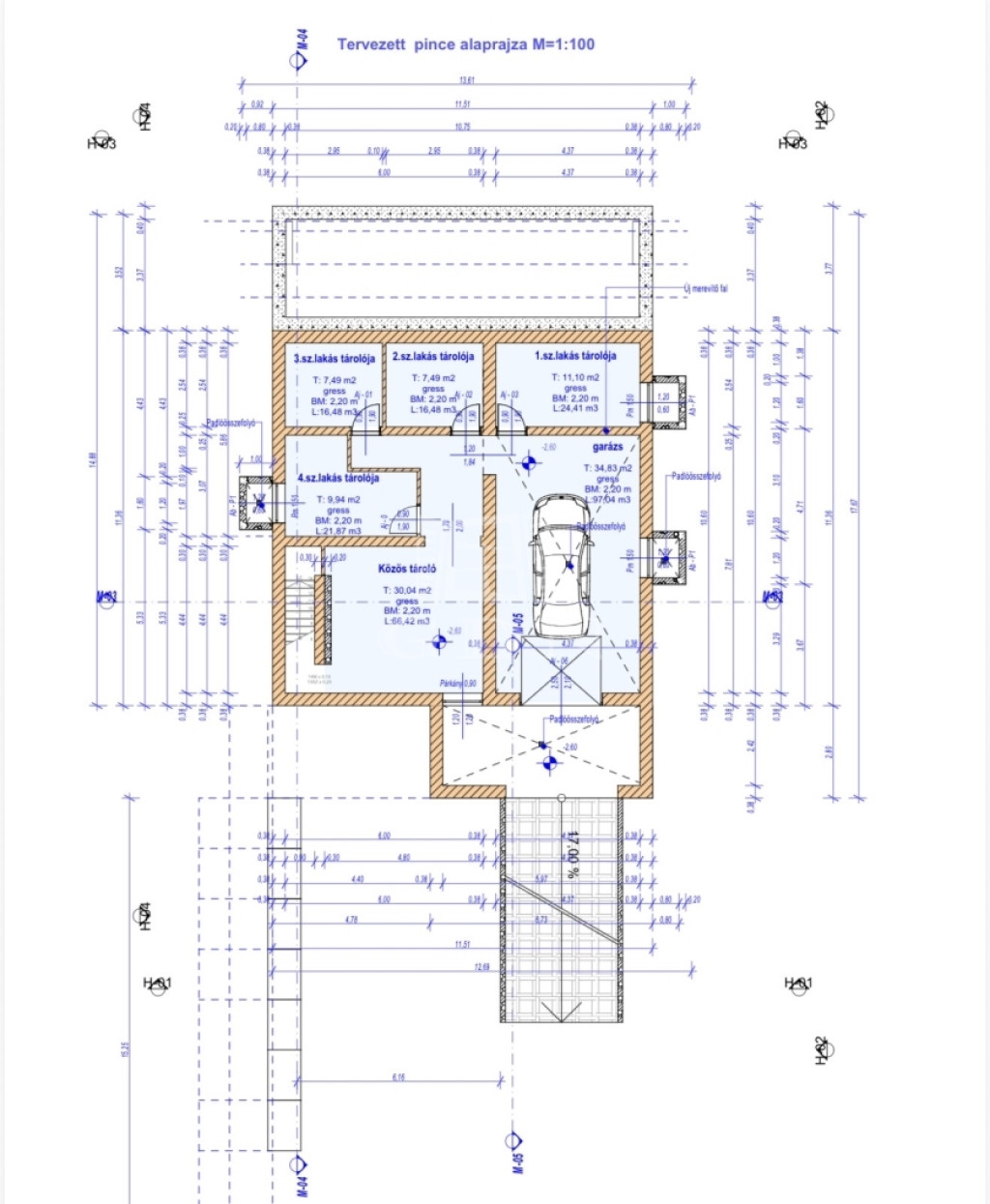 • valamint 1 db udvari, nyitott gépkocsi-beálló,