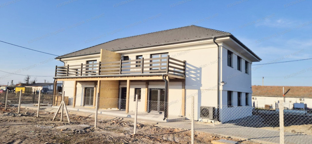 Cegléden, új utcában, új lakóparkban épült 4 lakásos társasház 1. emeletén 74 m²-es, 4 szobás, erkélyes (16 + 3,2 nm), kb. 100 nm kizárólagos használatú kerttel és a társasház udvarán belül egy darab, burkolt kocsibeállóval rendelkező tégla lakás eladó.