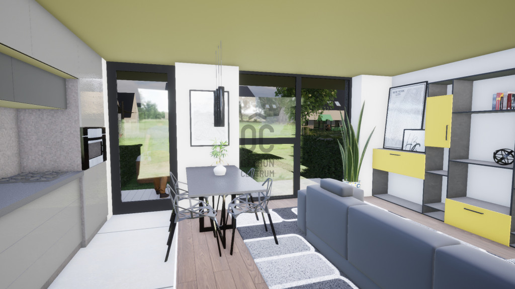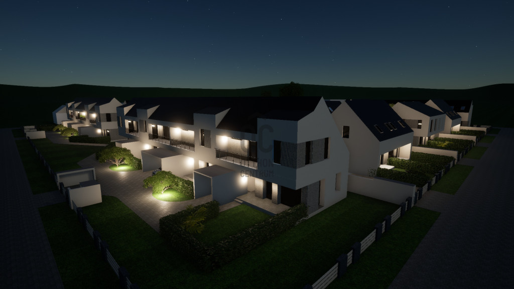 Nappali + 3 szobás, belső kétszintes lakás. A lakáshoz tartozik egy 8 nm-es fedett terasz és egy 6 nm-es tornác is. Az ingatlanhoz tartozik egy kötelezően megvásárolandó gépkocsi beálló, melynek ára 1,5 millió forint valamint saját udvarrésszel is rendelkezik. A lakóparkon belül játszótér, pihenőpark kerül kialakításra.