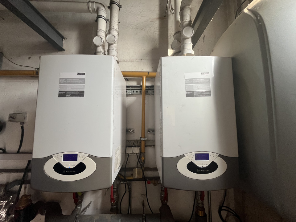 A fűtést házközponti gázrendszer biztosítja lapradiátorokon keresztül, míg a melegvíz ellátás szintén központi, gáz alapú rendszerről történik.