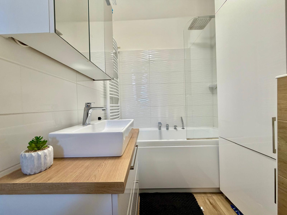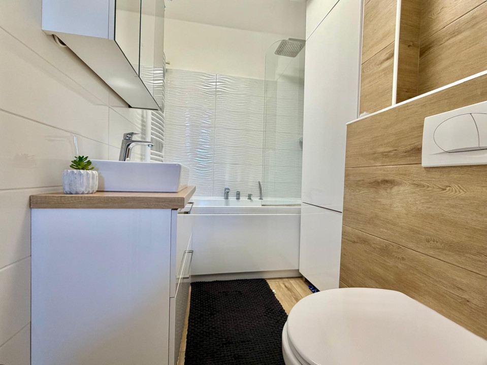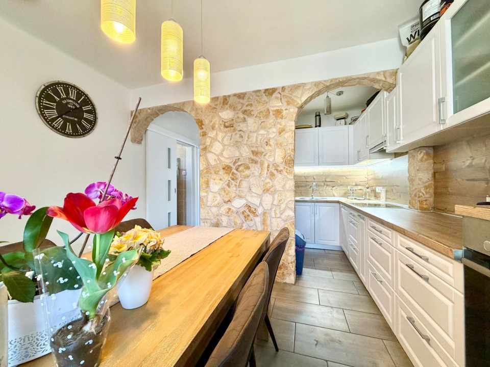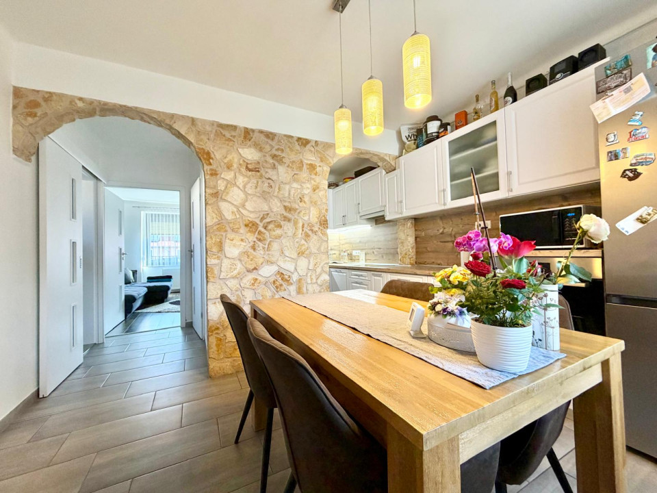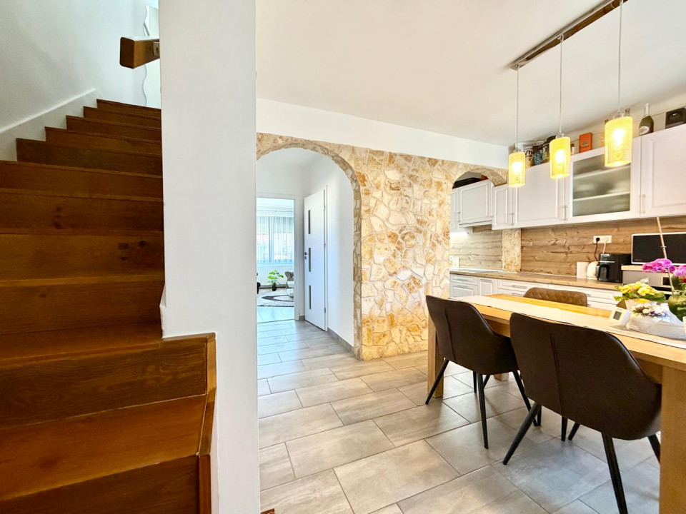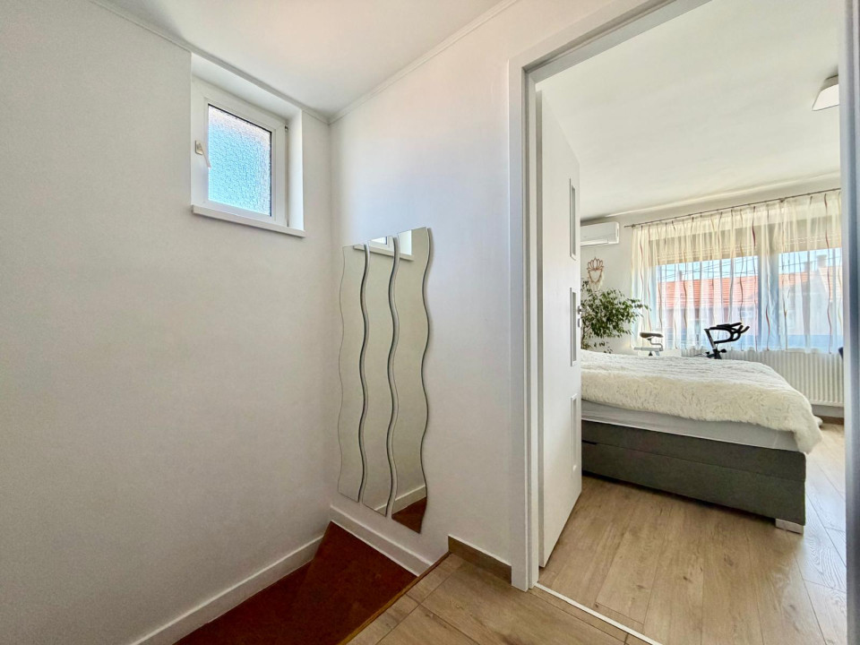A 2 szintes ingatlan 2 tágas, gardróbozott szoba + nappali konyha étkezős, klimatizált lakás, beépített, gépesített konyhabútorral .