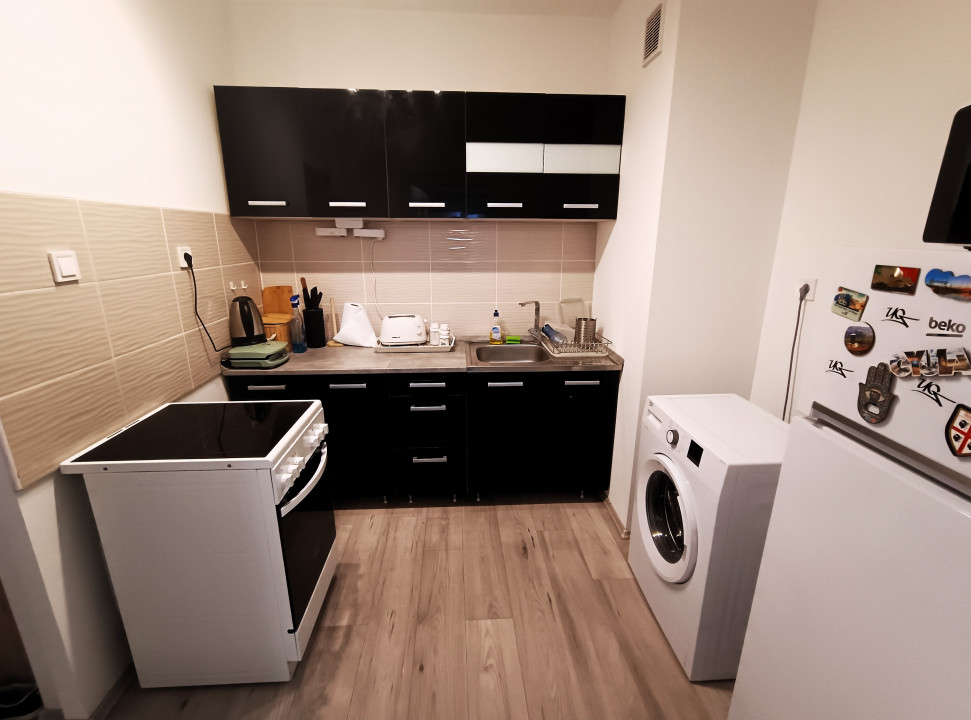 - Beépített konyha, kerámialapos tűzhellyel.