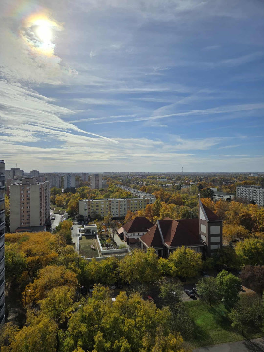 Debrecen, a két Egyetem között, az Újkert városrészben, a Borbíró téren, eladó ez a felújított, átalakított 76 nm-es lakás, mely így 80,57 nm-es, szinte ház méretű! A lakás 14 emeletes, 3 liftes társasház 14. emeletén található, gyönyörű panorámával! A legfelső szint csendes,a zárt folyosó végett is biztonságos, tisztább a levegő, akár még falat is bonthatunk.