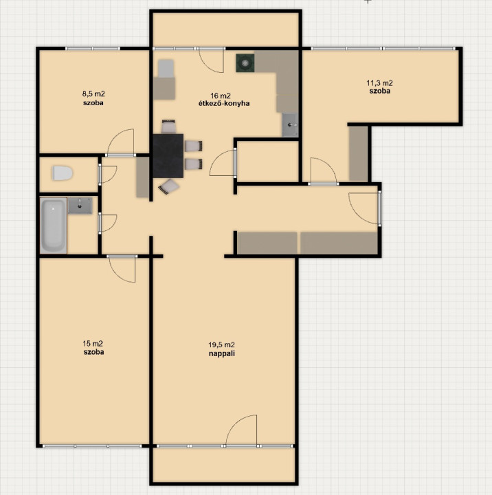 - külön helyiségben van a WC és a fürdőszoba