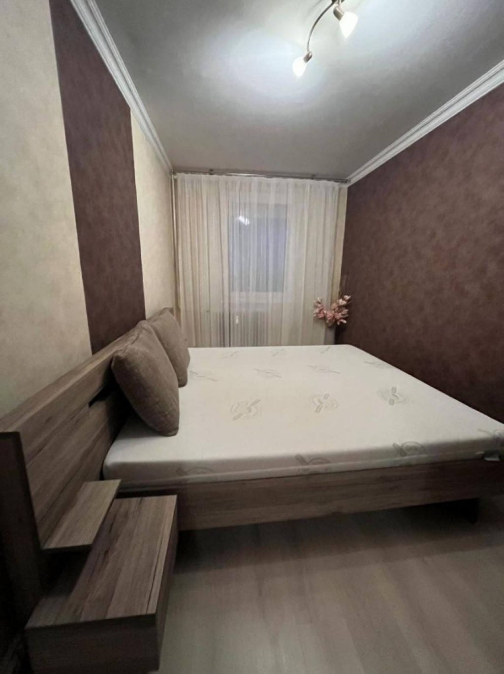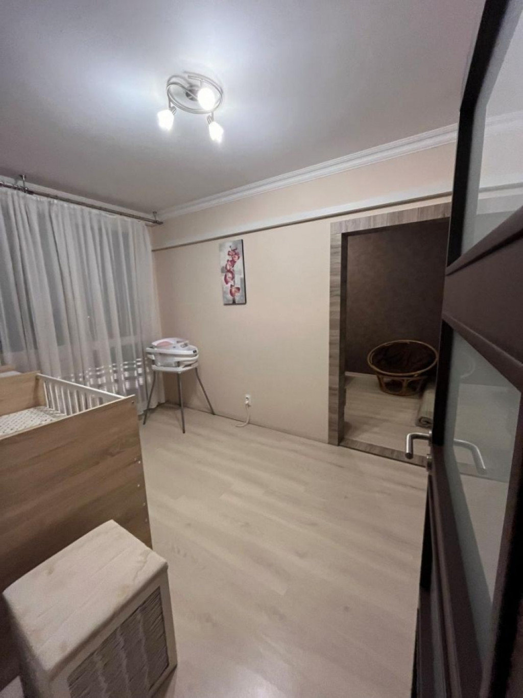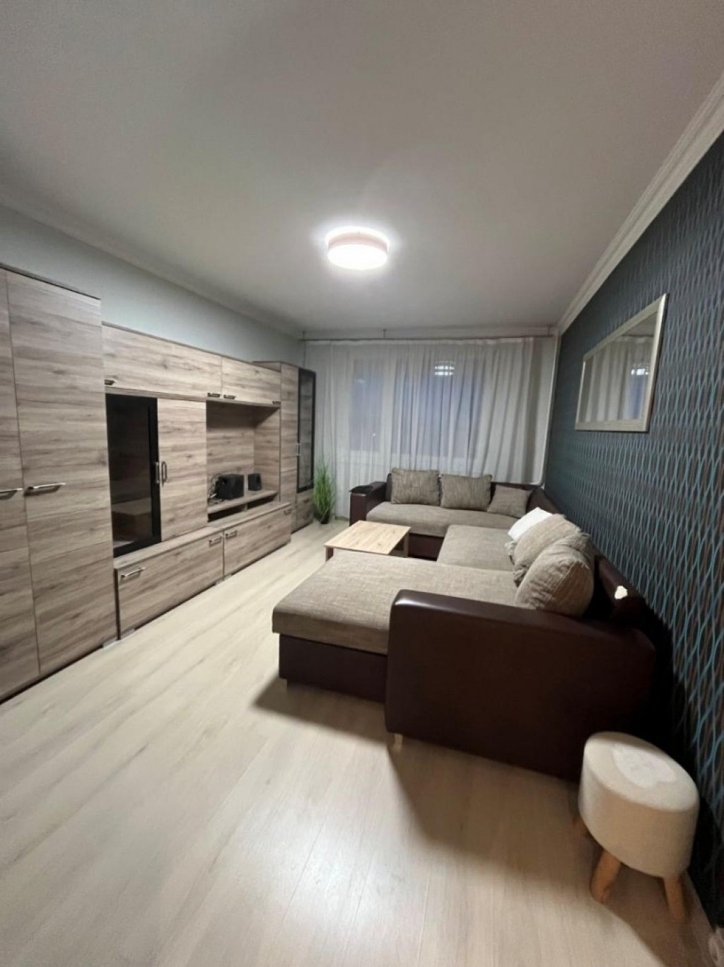 Nappali szoba külön bejáratú, a másik két szoba egymásból nyílik, laminált parkettával burkolva,