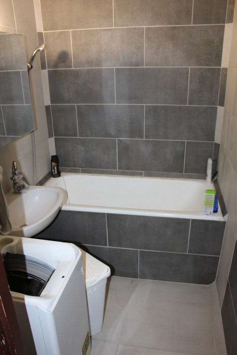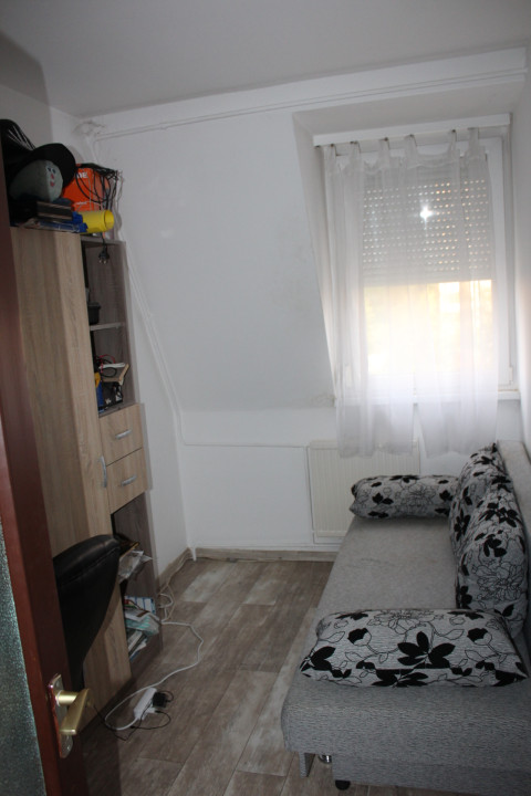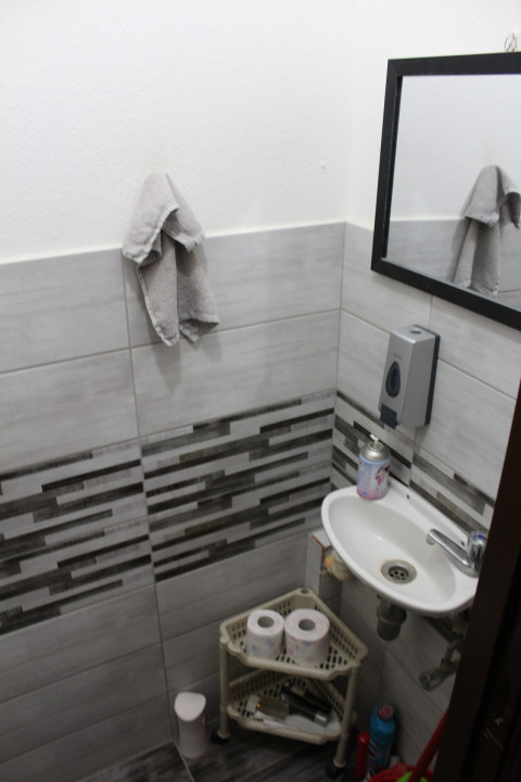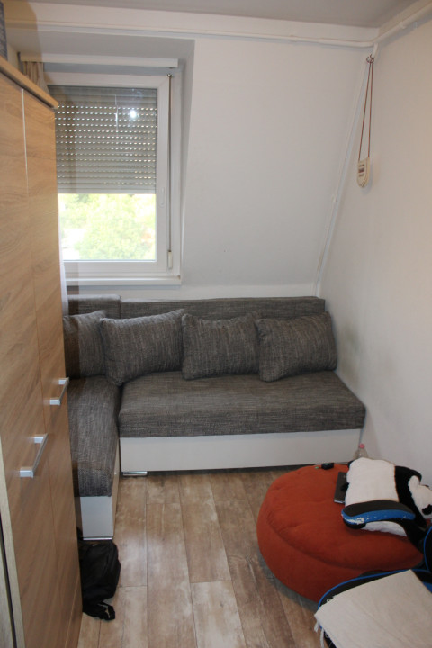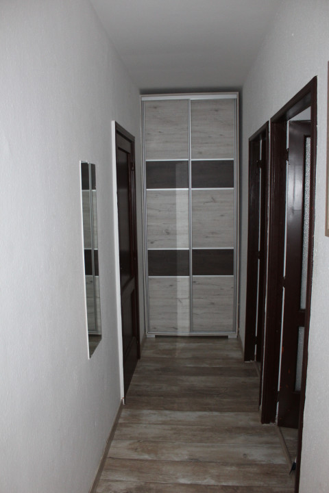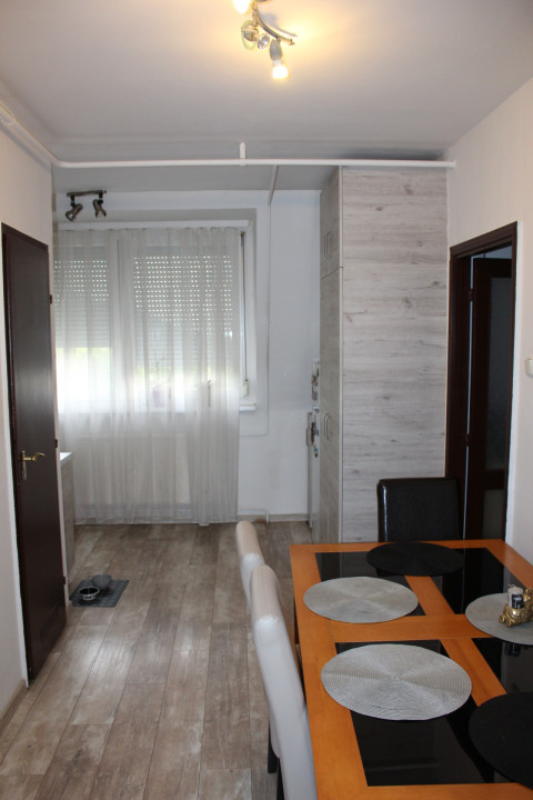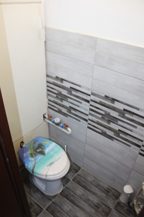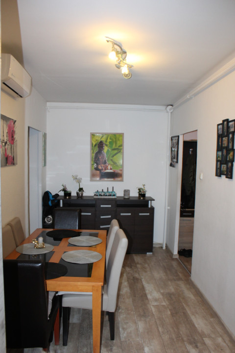 Helyiségei : előszoba + konyha, étkező + kádas fürdőszoba + nappali + 2 hálószoba + wc .