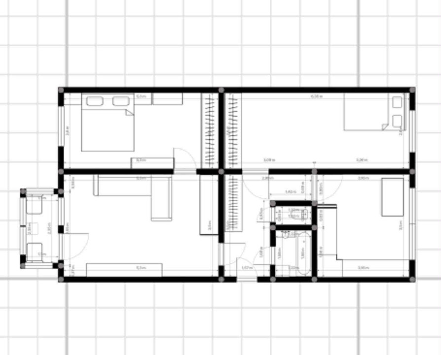Praktikus elrendezés: nappali + 2 szoba, étkezős konyha, fürdő, külön WC, folyosó.