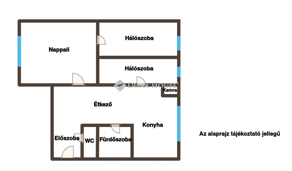 - nappali+2 hálószobás, étkező-konyhás, külön wc, fürdőszoba