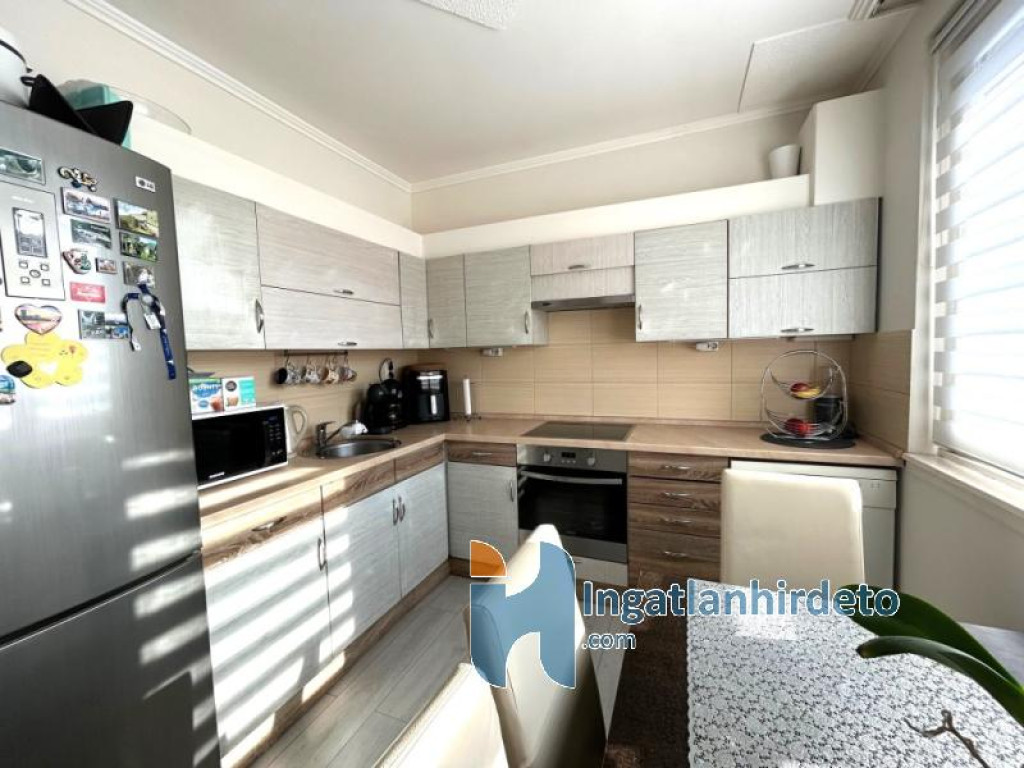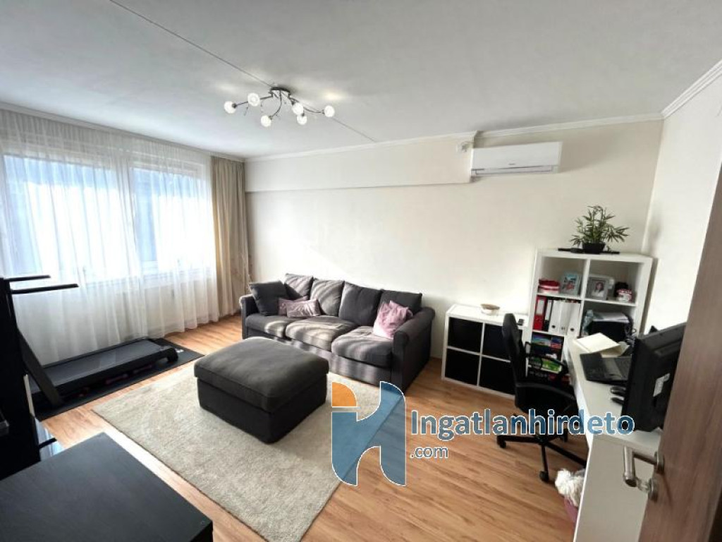 A lakás jó állapotú, nem igényel azonnali kompromisszumokat: cserélt beltéri ajtók, modern burkolatok, beépített, gépesített konyha, praktikus gardrób, klíma a nappaliban. A műanyag nyílászárók redőnnyel, szúnyoghálóval felszereltek, a távfűtés egyedi mérésű, a rezsi jól tervezhető. A fürdő és a WC külön helyiségben kapott helyet, ami a mindennapokban sokkal többet számít, mint elsőre gondolnánk.