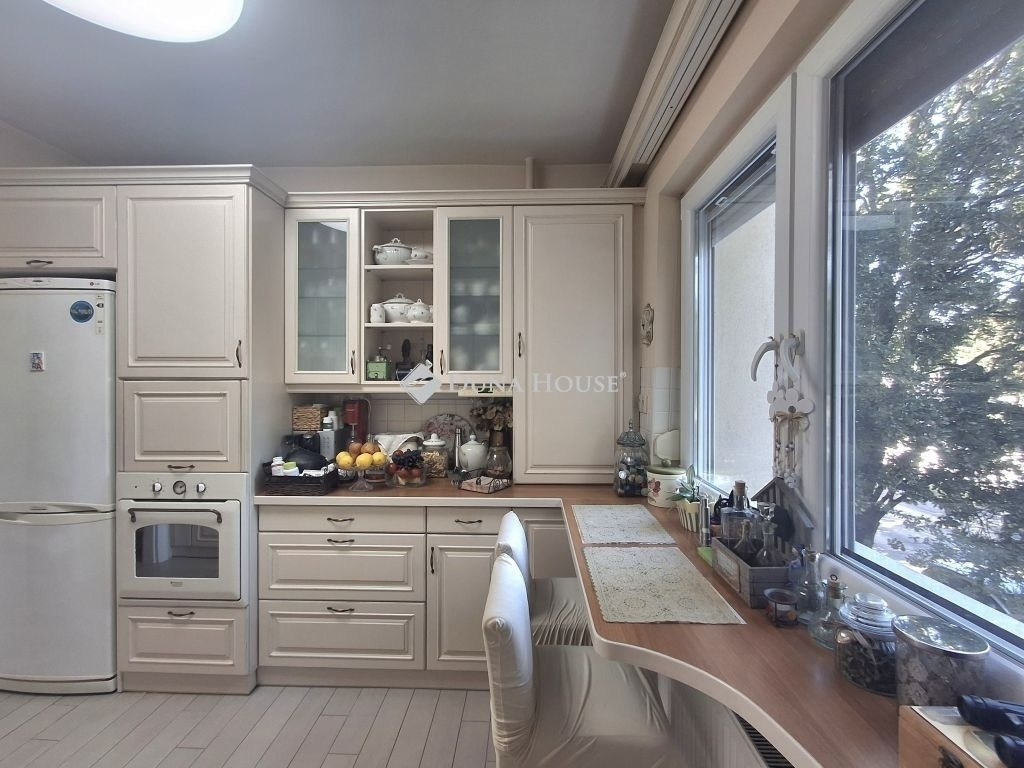 - gépesített egyedi konyhabútor (mosogatógép, kerámialapos főzőlap, elektromos sütő, elszívó, hűtő)