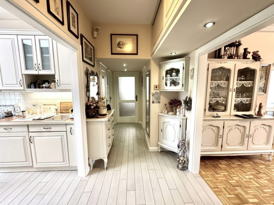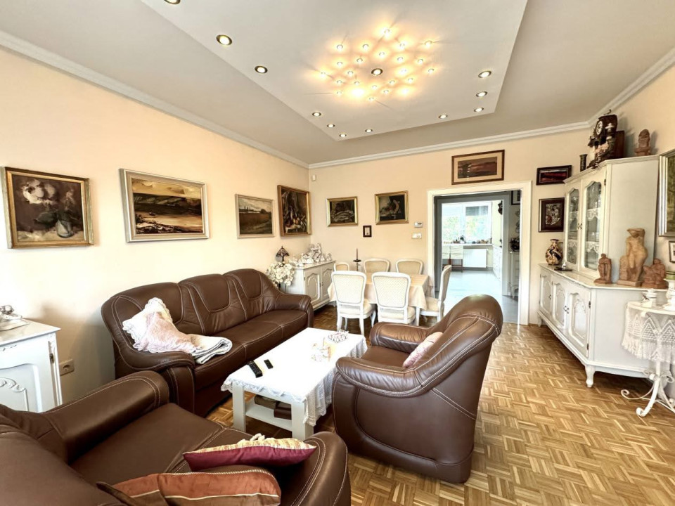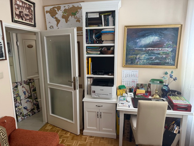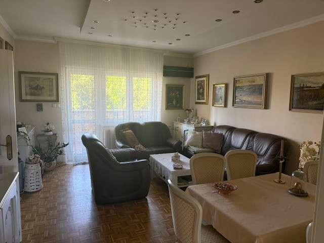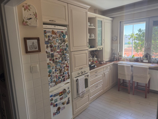 Helyiségei: tágas előszoba, tágas konyha, 3 szoba, fürdőszoba (tusolóval + káddal+ bidés toalettel), külön toalett kézmosóval, kamra, 6nm gardróbszoba, 9nm loggia, közlekedő, saját pince (6nm).