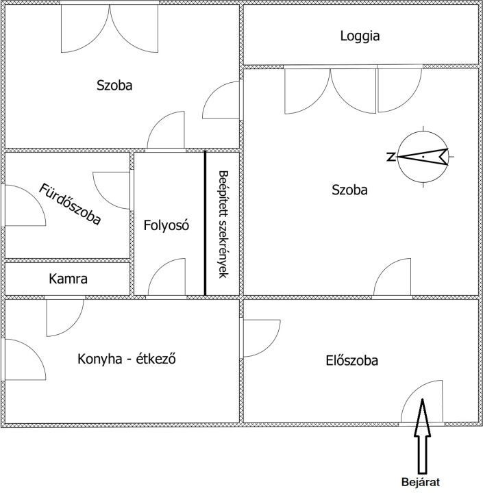 - A folyosón beépített szekrények találhatók.