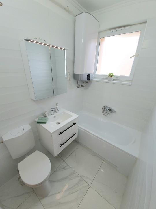 A társasház szigetelt(10cm) , alacsony rezsiköltségű új, modern gázkonvektor biztosítja a fűtést (telefonról vezérelhető), a meleg vizet új Ariston bojler adja.