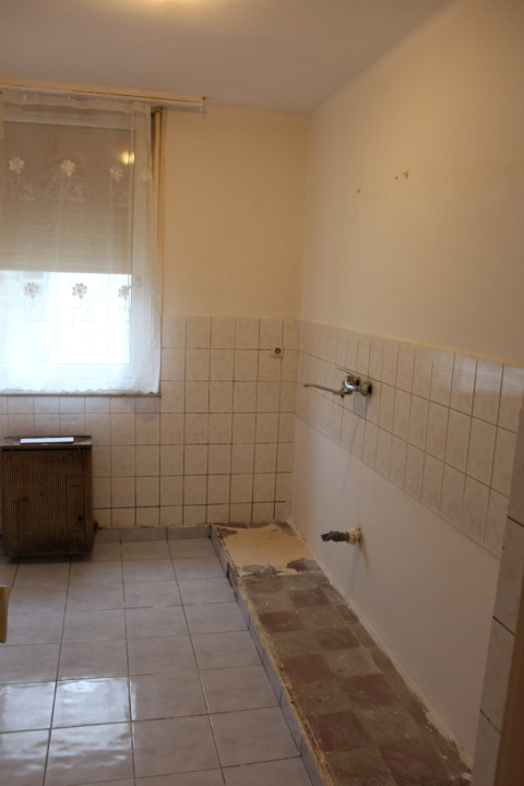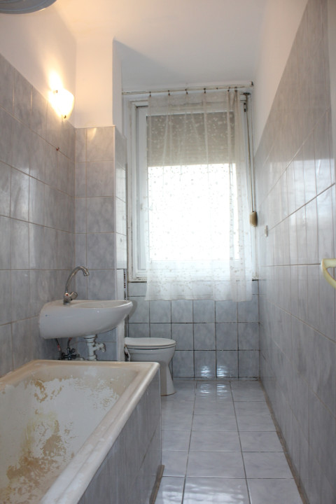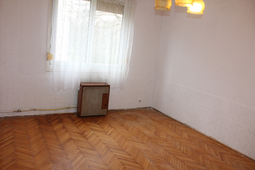 Helyiségei : előszoba, közlekedő + 2 szoba + konyha, étkező + spájz + kádas fürdőszoba wc-vel .