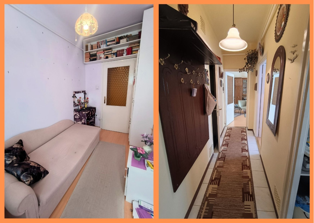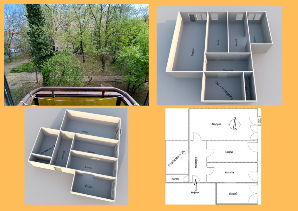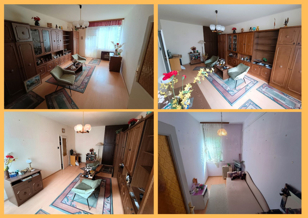 - Helyiségei: előszoba, konyha, kamra, nappali + 2 külön nyíló szoba, fürdőszoba + WC.