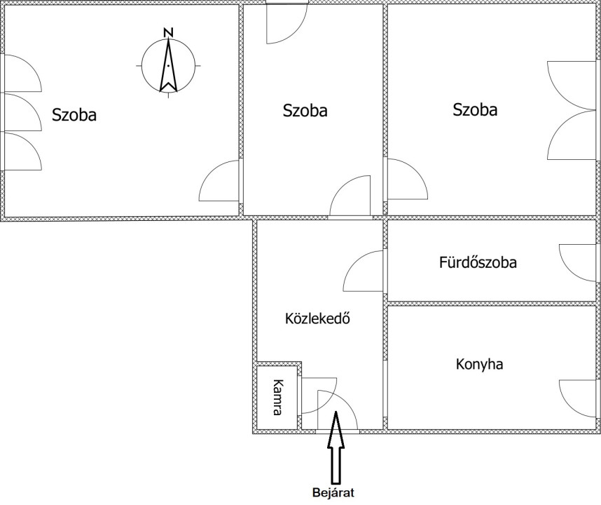 - Az ingatlan helyiségei: félszoba +2 különnyíló szoba, konyha, kamra, fürdőszoba + WC.
