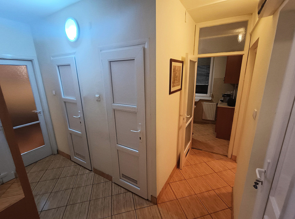 - Az előszobában praktikus, nagyméretű beépített gardróbszekrény található.