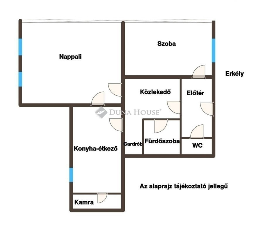 - nagy nappali, szoba, étkező-konyha kamrával, külün wc, fürdőszoba, gardrób