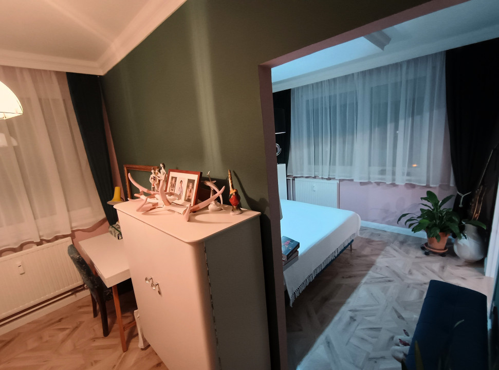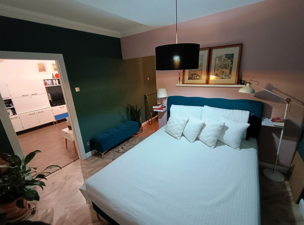 - A lakás az átalakítás során egybenyitott, hatalmas konyha-étkezővel és a hálószobából nyíló dolgozó-gardrób szobával rendelkezik.