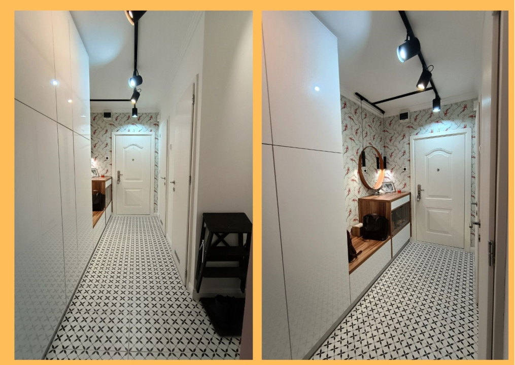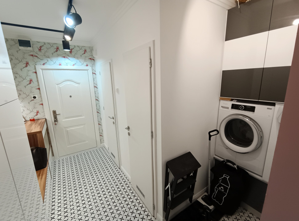- Az előszobában beépített gardróbszekrény, illetve egyedileg tervezett kamraszekrénnyel kiépített háztartási helyiség található.