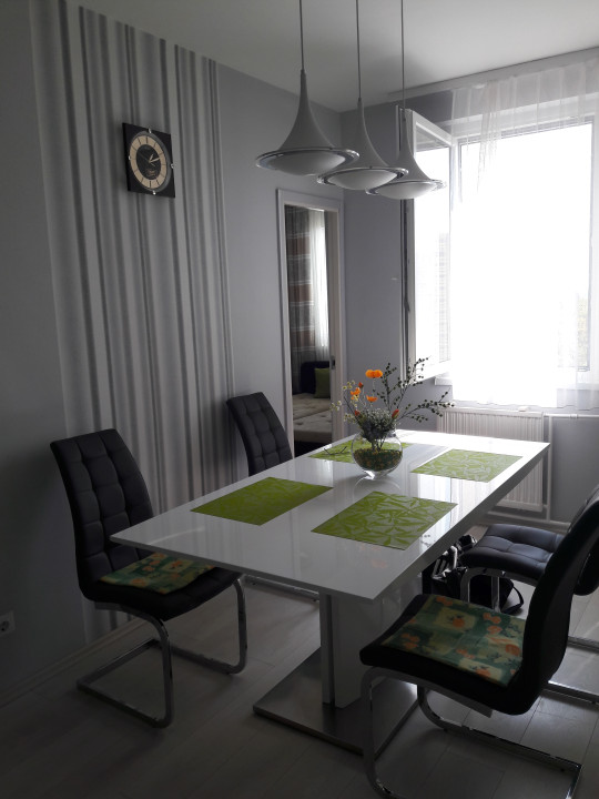 A lakás zárt folyosójú, délkeleti tájolású, a város fele szép panorámával rendelkezik, nagyon világos, modern minimál stílusú konyhabútorral és modern , megkímélt háztartási gépekkel van felszerelve. A közlekedő térben nagy befogadú képességű beépített szekrény van beépítve. A parkolás (ingyen), közvetlenül a házhoz tartozó parkolóban lehetséges.