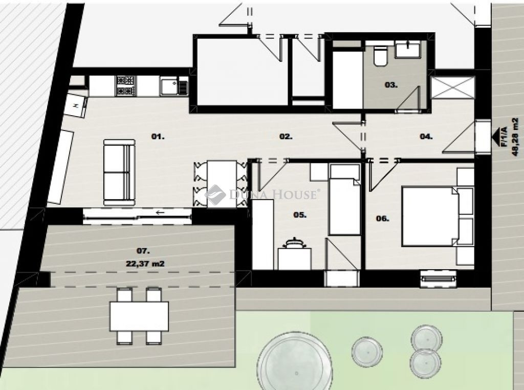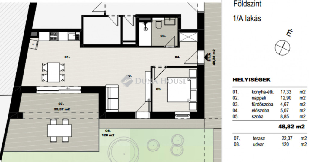 Debrecen belvárosában Új építésű Exkluzív Napfényes Tégla Építésű Lakás Eladó !Összességében, ha egy olyan otthont keres, amely modern technológiai megoldásokat, fenntarthatóságot és stílust ötvöz, akkor ez az ingatlan tökéletes választás lehet Ön számára. Forduljon hozzám bizalommal további információk és megtekintésért. Fedezze fel, hogy mit jelent ma egy valóban korszerű otthonban élni!A lakás 48,28 nm , melyet nappali + 1 szobás vagy nappali + 2 szobás lakásként lehet használni. A lakáshoz tartozik még részben fedett terasz , alapterülete 22,57 nm. Lakáshoz tartozik még 120 nm kert helyiség.Fontos megemlíteni, hogy az ingatlant egy 12 férőhelyes mélygarázsból való parkolóhely megvásárlása egészíti ki, melynek ára 12 millió Ft. Ez egy hihetetlenül praktikus választás azok számára, akik a belváros közelségét értékelik, de nem szeretnének parkolási gondokkal foglalkozni.A társasház igen praktikus személylifttel is rendelkezik, mely hozzáad az ingatlan kényelméhez. A napfényes lakások nagy figyelmet fordítanak a világosságra és a tágas tér érzetére, ahol a harmadik rétegű Kömmerling műanyag nyílászárók pedig gondoskodnak a kiváló szigetelésről.Az épület tégla szerkezetű, a falak Porotherm 30N+F falazattal készültek, Austrotherm 15 cm-es EPS homlokzati szigeteléssel szigetelt, így garantálva a hőhatékonyságot és az energetikai hatékonyságot, amit az AA+ energetikai besorolás is igazol. A fenntarthatóság és a hatékonyság jegyében a fűtést és a hűtést egyaránt a levegő-víz hőszivattyús rendszer biztosítja, padlófűtéssel, valamint lakásonkénti vezérlésű fan-coil hűtéssel, nyújtva ezzel az otthoni komfortérzés új szintjét.Engedje meg, hogy bemutassam ezt a különleges lehetőséget, egy 2025-ben épülő, napfényes lakást, mely egy modern és fenntartható megoldásokkal felszerelt társasházban helyezkedik el. Az ingatlan kínálata mindazok számára ideális, akik értékelik a kényelmet, a modern technológiát és a