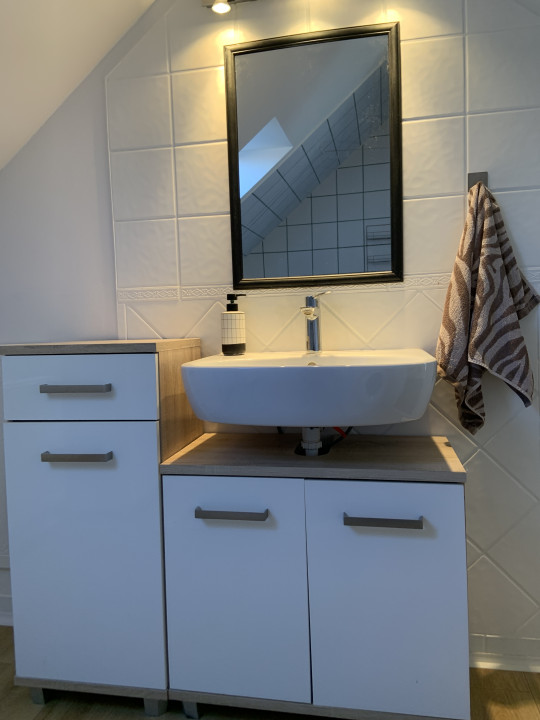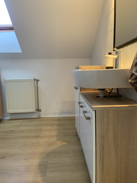 Külön fürdő és wc, spájz, beépített szekrény, kis gardrób.