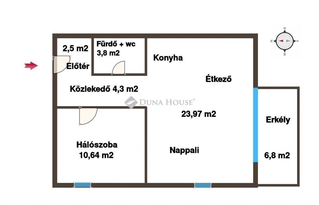 Lakótér: 45,18 m² (Délnyugati tájolás világos terekkel)