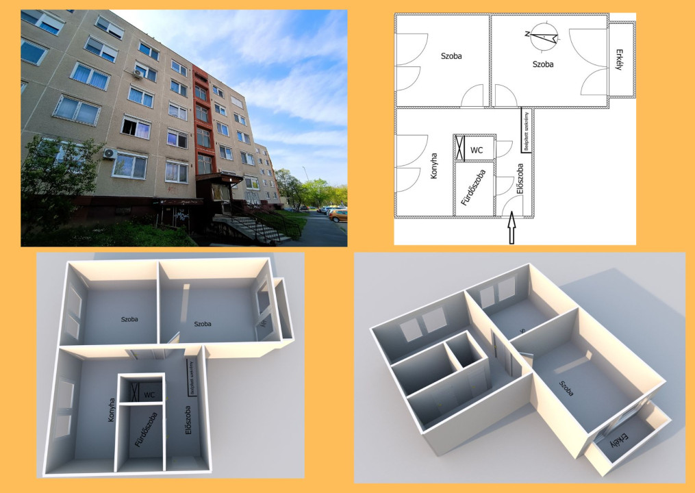 - Helyiségei: előszoba, étkezőkonyha, 2 külön nyíló szoba, fürdőszoba, WC külön.