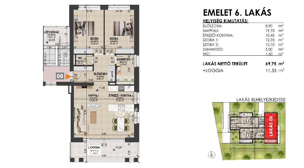 Debrecen, Nagyerdőalján eladó ÚJ ÉPÍTÉSŰ, 1. Emeleti 70 m2 + 11m2 Loggia , Nappali + 2 szobás, prémium kivitelezésű társasházi lakás.