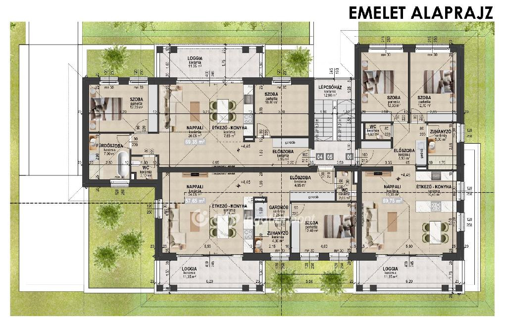 A földszinti lakások közvetlen kertkapcsolattal rendelkeznek, így tökéletes választást jelentenek azoknak, akik saját zöld területre vágynak, míg az első emeleti lakások tágas, nagy erkéllyel biztosítanak kellemes életteret és extra kényelmet.
