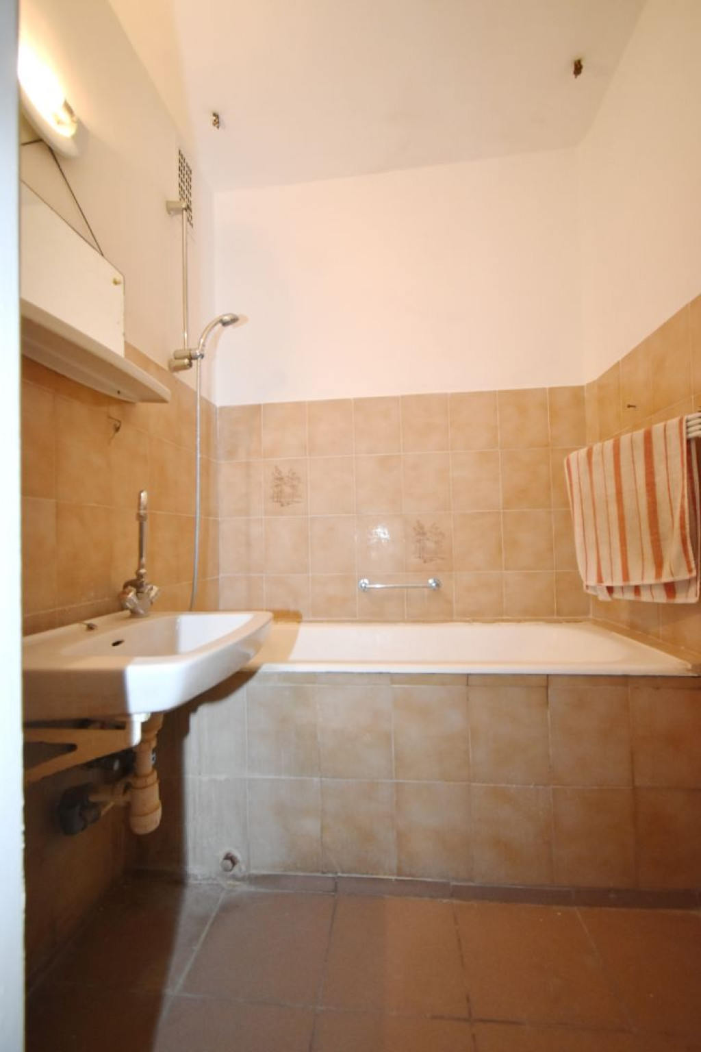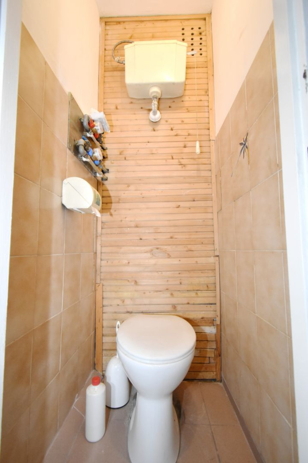 A fürdőszoba és a WC külön helyiségben található, praktikus kialakítással.