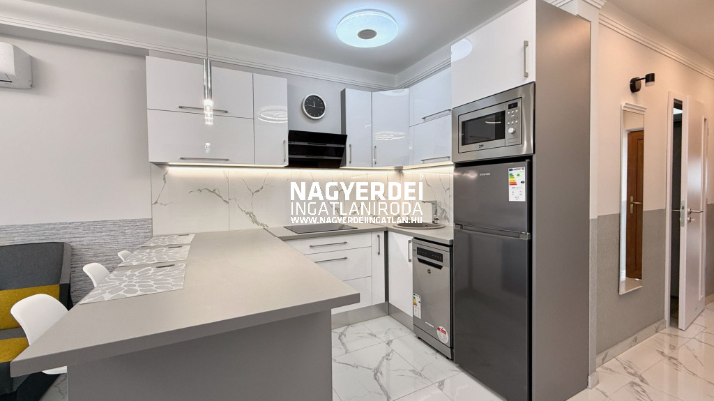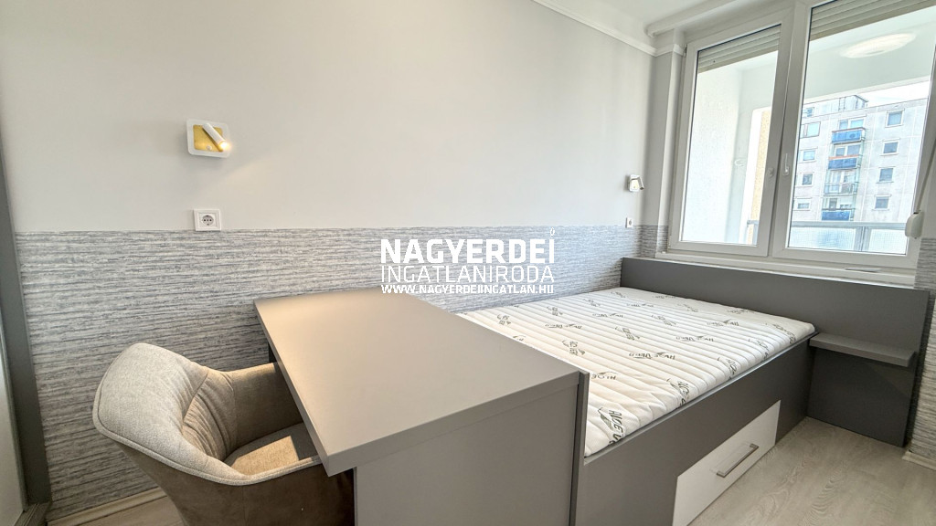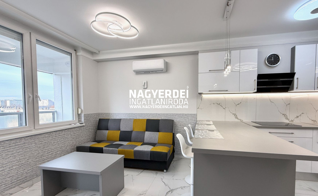 In the Libakert district of Debrecen, close to the city center and the main university building, a premium quality, renovated apartment with an American-style kitchen, living room and 2 bedrooms is waiting for its new owner! Fully equipped with brand new furniture and appliances, air-conditioned, ready to move in.