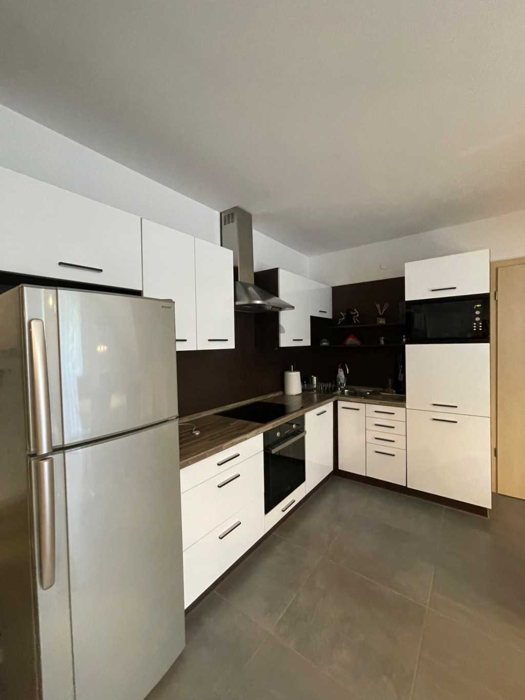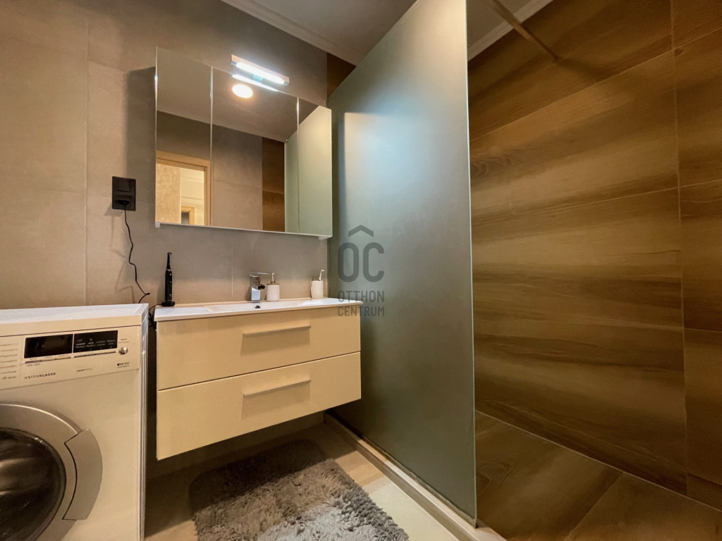 A vételár tartalmazza a konyhabútort gépekkel, hűtővel, valamint a beépített és egyedi bútorokat – így a lakás azonnal költözhető, teljesen berendezve.