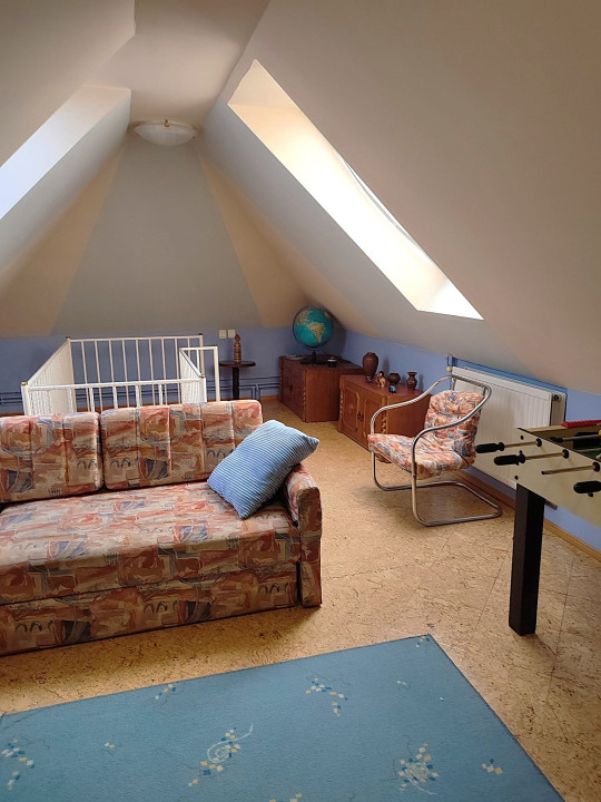A felső szinten egy szoba van, amely alkalmas vendégszobának vagy kamasz gyerek birodalmának kialakítására mert a víz illetve szenyvíz is fel van vezetve a helységbe. Ezért akár egy zuhanyzót WC-vel is ki lehet alakítani.