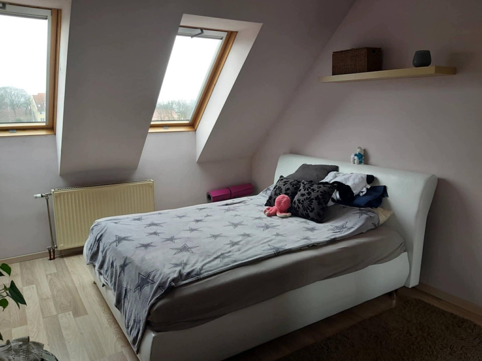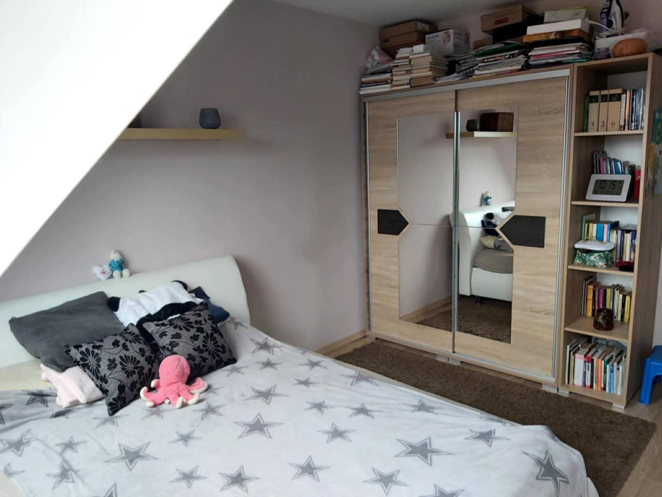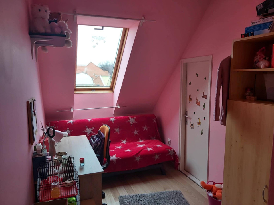 A szobák laminált parkettásak, a többi helyiség járólappal burkoltak. A szobák ablakai fa hőszigetelt Velux, az erkélyajtó műanyag hang-és hőszigetelt.