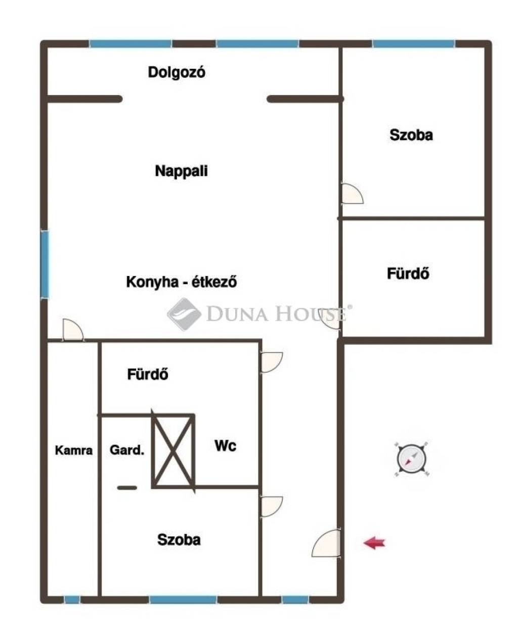 - két hálószoba (az egyik szobához gardrób is tartozik)