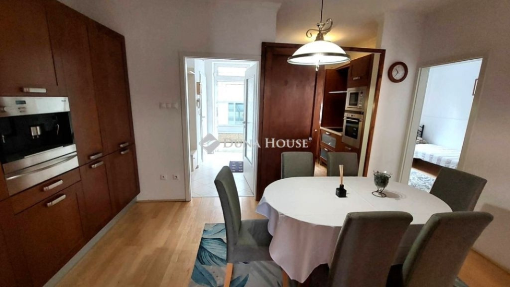 A lakás egyik nagy előnye, hogy a képeken látható bútorzattal és gépesített konyhával együtt kerül értékesítésre, így akár azonnal költözhető vagy bérbe adható.